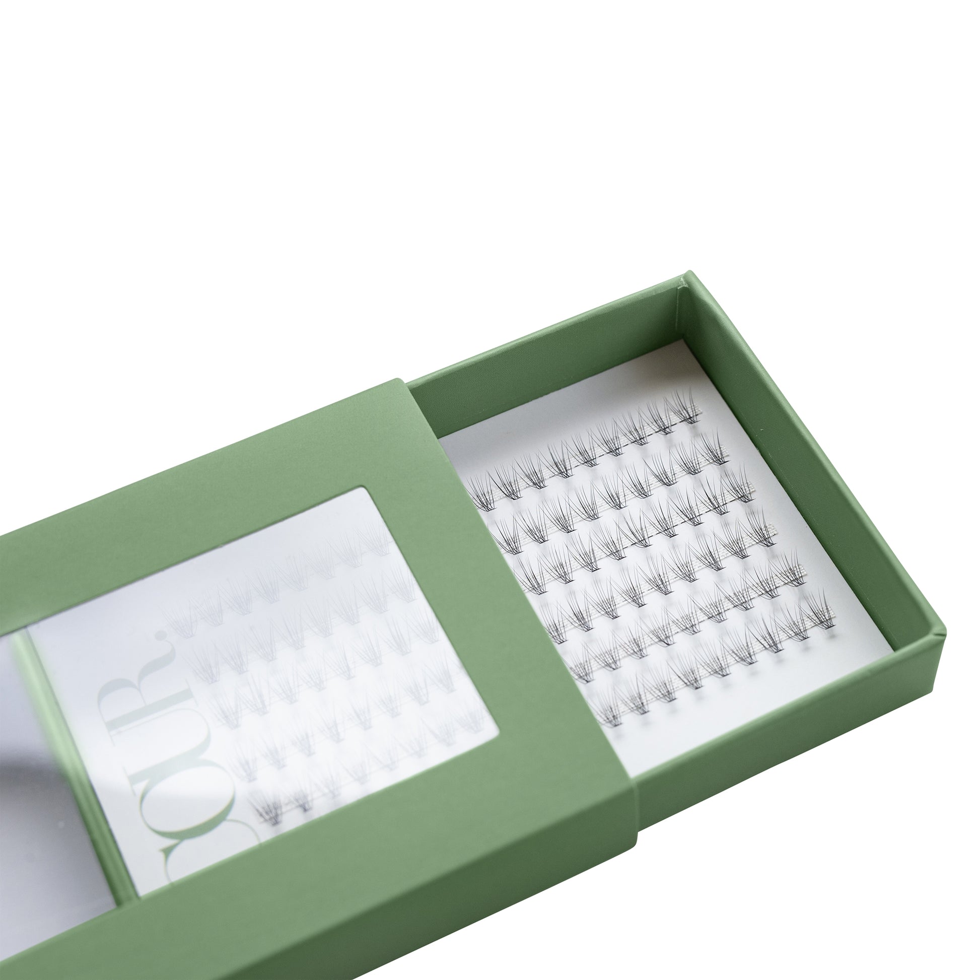 Our naturals from the Cour Cosmetics range give a beautiful wispy finish to your lash line. Naturals feature a light wispy cluster fan Wipsys fan out to a wide fan that is all one length tapering down to a thin base. Perfect for a natural wispy bridal look to add natural volume wisp to the lash line.