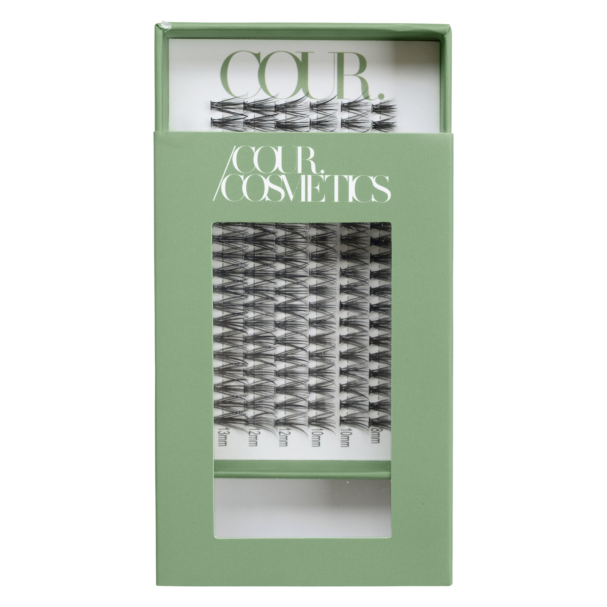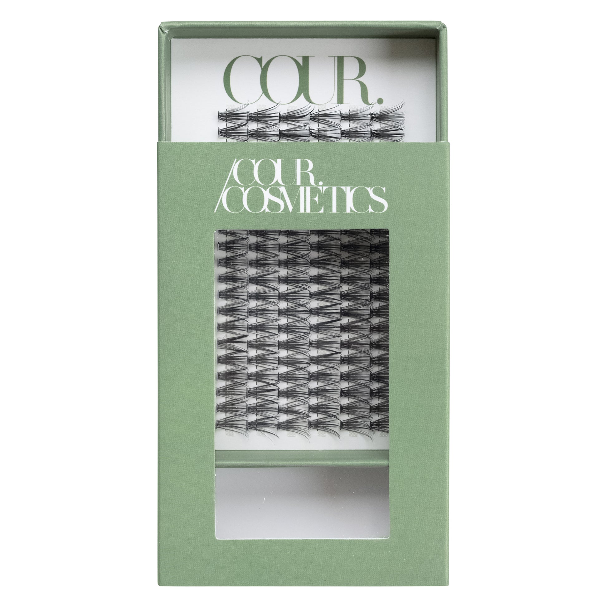 Cour Cosmetics Volumes, The fullest in the range feature a thick dense fan tapering down to a medium base. Our volumes give a strip-like effect, the advantage of a strip being able to personalise lengths with our volume cluster fans. Perfectly paired with a smokey eye for a dramatic look.